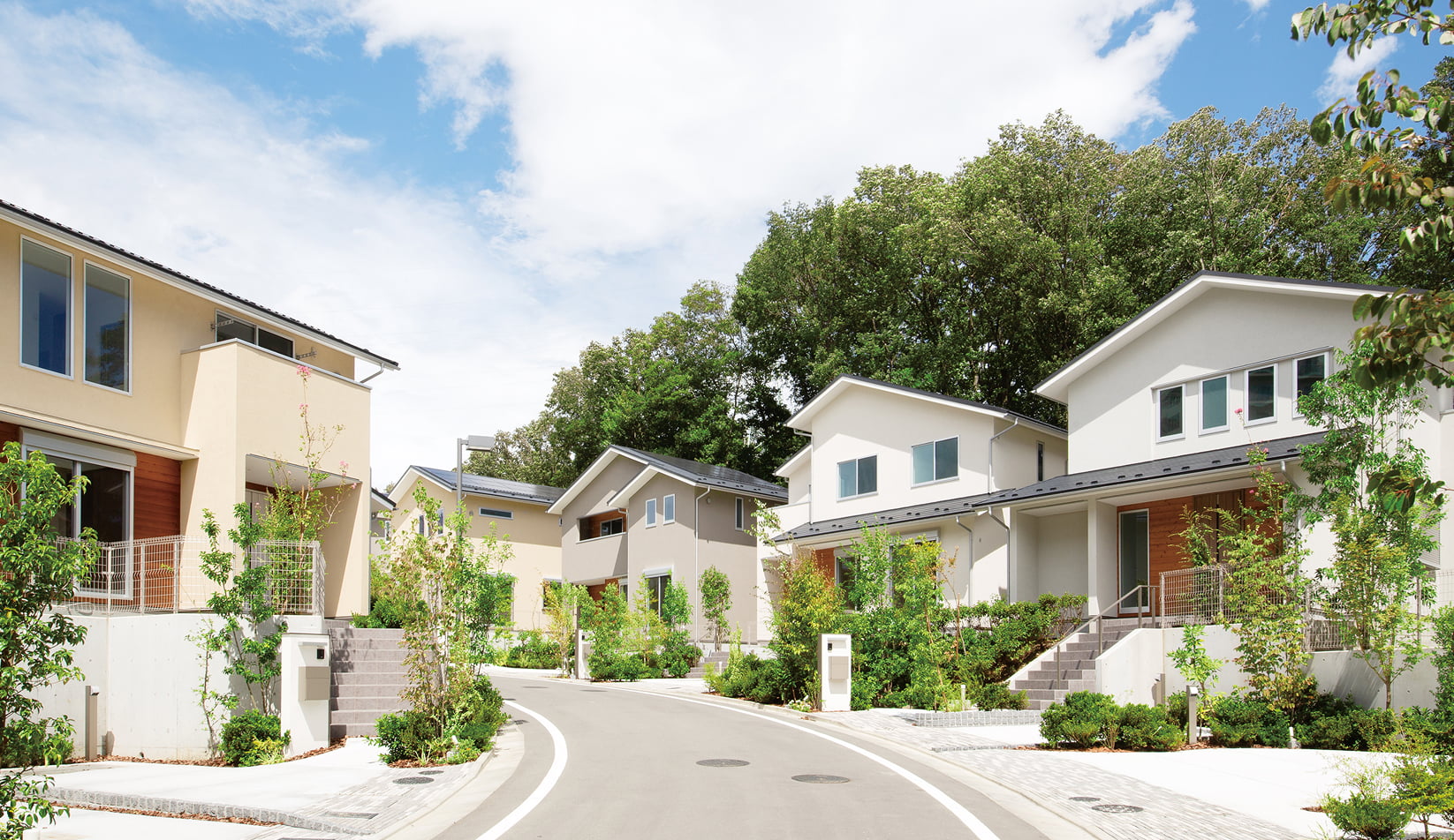 AQ Groupの分譲住宅には、注文住宅で磨いてきたAQ Groupの魅力が詰め込まれています。細部まで「こだわったデザイン」、ずっと安心・快適に暮らせる「高性能」、一邸一邸妥協なく建てられた「職人品質」、それでいて「適正価格」。また、「永代家守り」の精神のもとそれぞれ個性的でありながら、地域や自然と調和し、ゆるやかに人々がつながる“生涯に渡って住み心地のいい街づくり”を行っています。