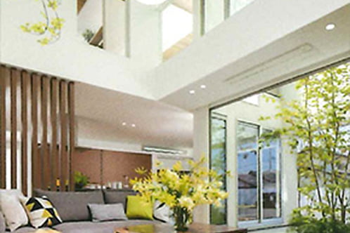 アキュラホームが提案するのは、風・太陽・緑といった自然の力を活かした心地よい住まいづくり。夏を涼しく冬を暖かくする設計や、室内に風を採り込むレイアウト、太陽光発電システムなど、地球にも家計にも優しいアイデアを積極的に提案し、自然と共生する心地よさと先進設備の利便性を兼ね備えた豊かな暮らしを実現しています。