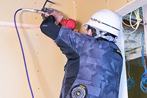 深刻化する職人不足を解決し、将来にわたって品質の高い住まいを提供し続けるため「次世代建築体制」の構築を進めています。建築現場の効率を上げる独自の「付加価値物流」で職人の負担を減らし、さらに次世代を担う職人の育成にも取り組んでいます。熟練の経験と技を継承し、高い職人品質を未来につなげることが私たちの使命だと考えています。