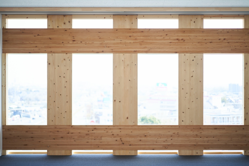 弊社は木造耐力壁ジャパンカップ時代の大会黎明期から出場。今大会の結果を合わせると総合優勝7回、トーナメント優勝9回を達成しています。さらに2023年には大会レコードとなる「71.2kN」を記録。これは「7トン以上の加力に耐える壁」ということになります。カベワンGPに出場し、結果を残すことで木造建築の技術を高めてきた弊社は、戸建て住宅や中大規模木造建築にその知見を展開。純木造8階建て本社ビル(埼玉県さいたま市)や純木造5階建てオフィスビル(神奈川県川崎市)に採用されている「組子格子耐力壁」、「相欠き合わせ柱式ラーメン構造」といった革新的な構造技術は、まさにカベワンGPから誕生したものです。