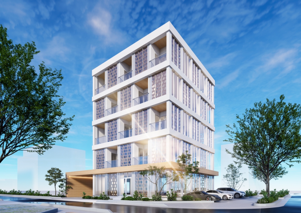 池田建設「純木造5階建て複合ビル」完成予想パース