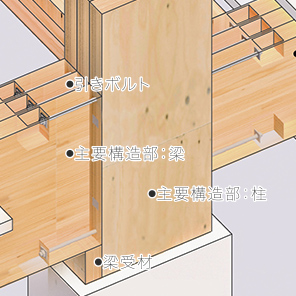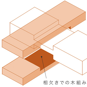 - 特殊な金物を使わず、日本古来の技術である相欠き仕口による木のめり込みによって水平力を負担しています。